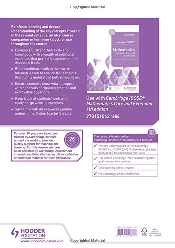 Hodder IGCSE Mathematics Core & Extended Workbook 4th Edition By Ric Pimentel