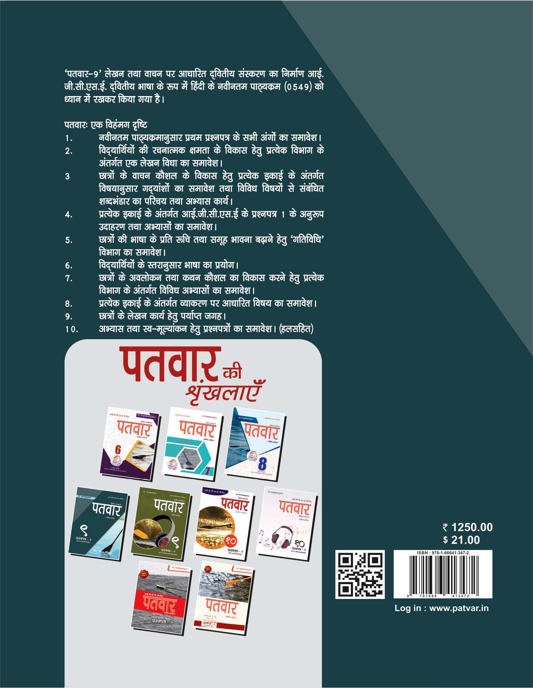 Patvar IGCSE Hindi Textbook, 2nd Edition, Paper 1 Grade 9 ( Reading and Writing) By Sandip Patil