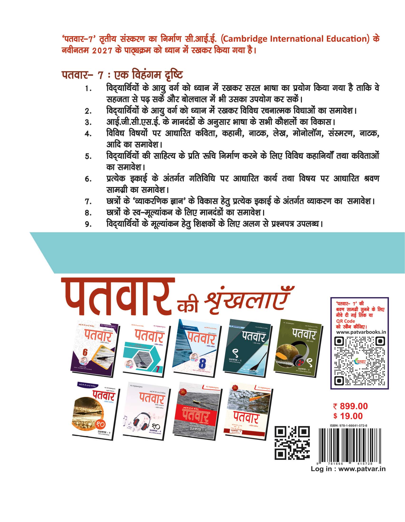 Patvar IB- M.Y.P. & IGCSE Hindi Text Book & Listening - Grade 7 2026 Edition